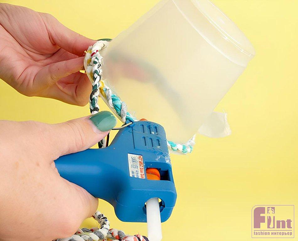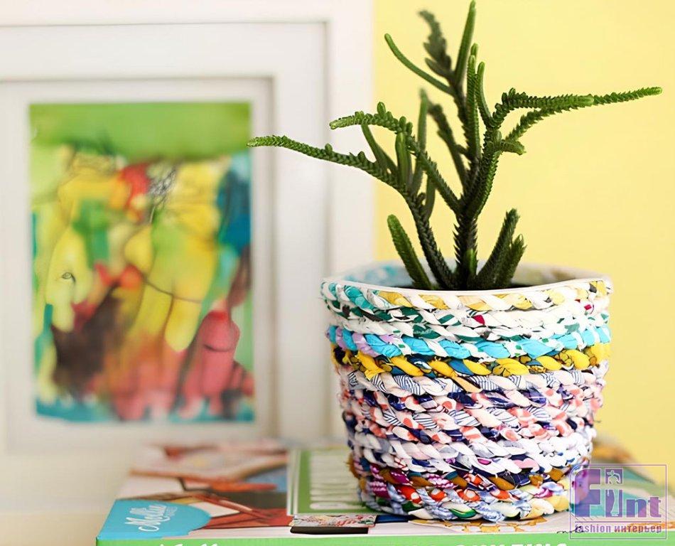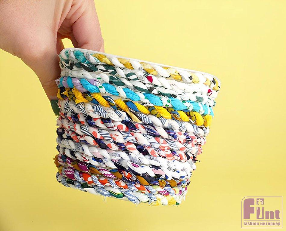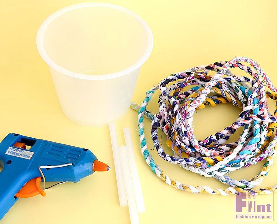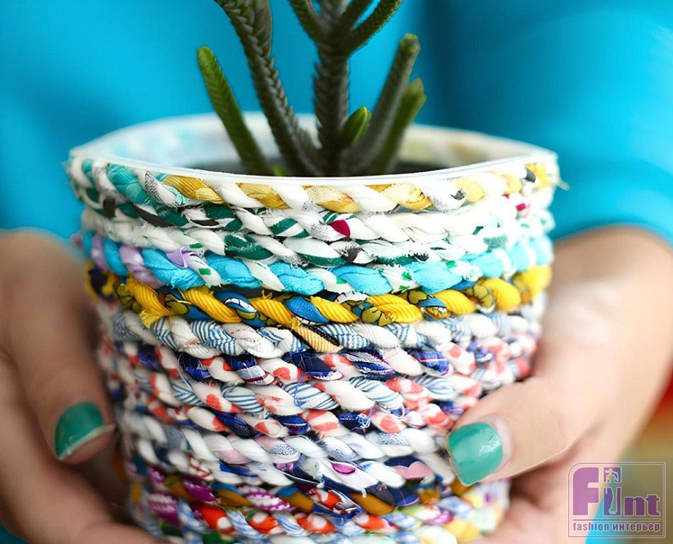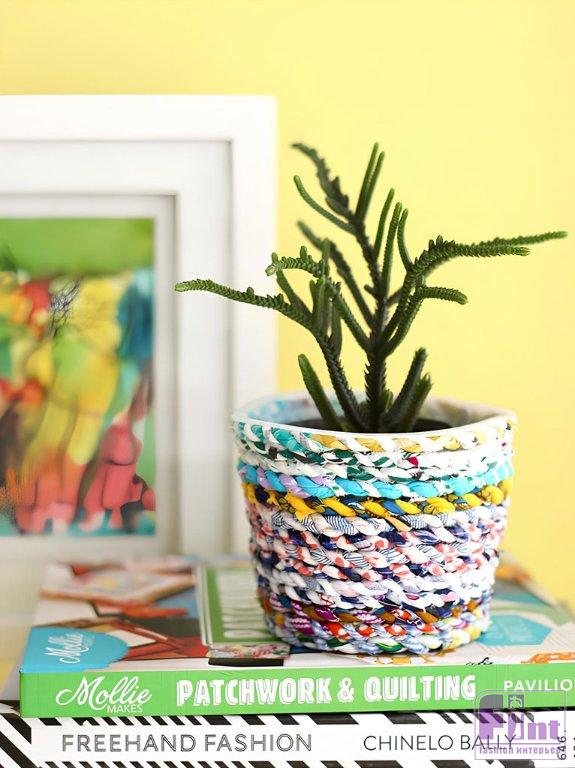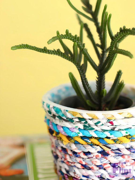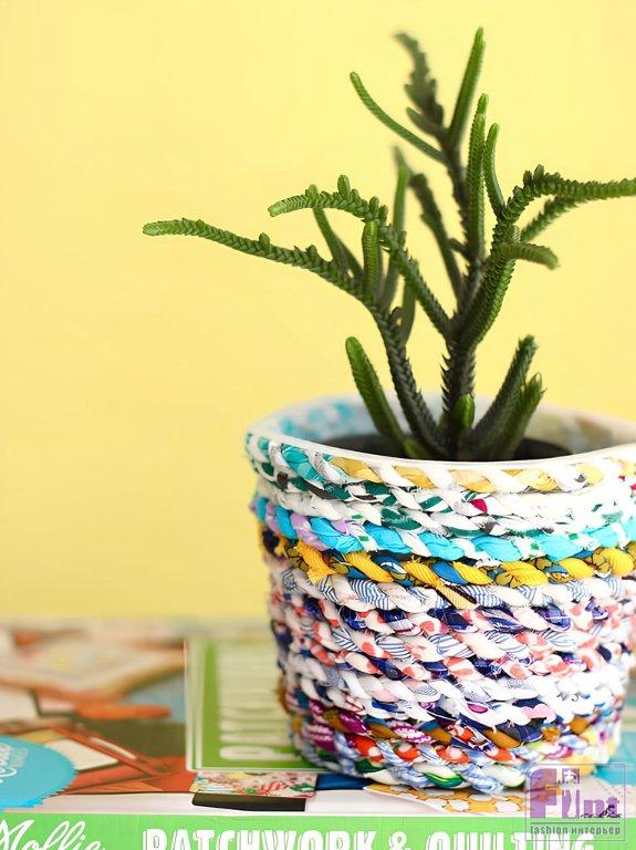Используйте старое пластиковое ведёрко и обрезки ткани, чтобы сделать это потрясающее цветочное кашпо. Это отличный способ буквально за копейки создать восхитительный аксессуар для украшения вашего дома!