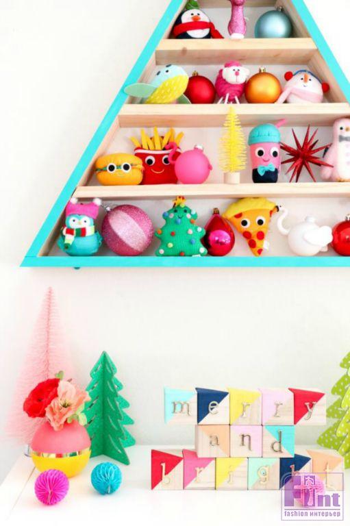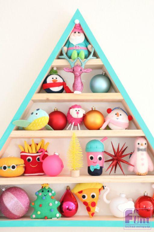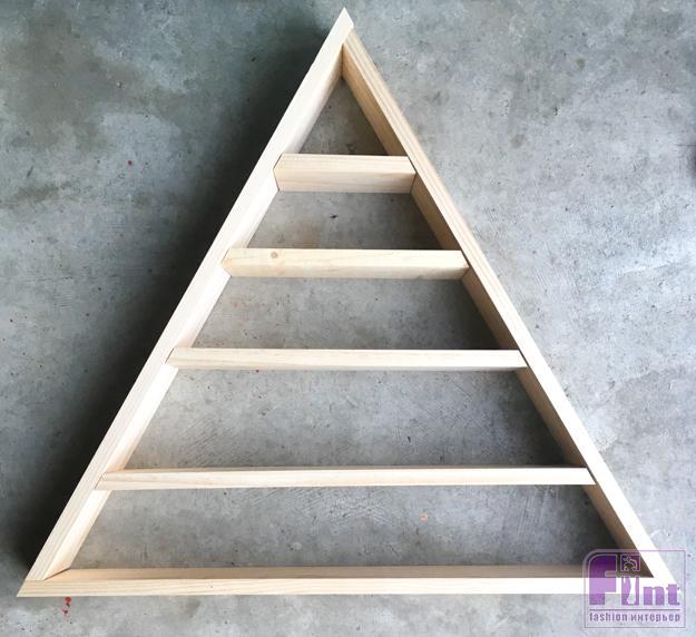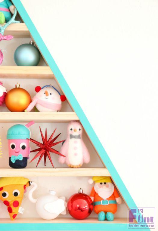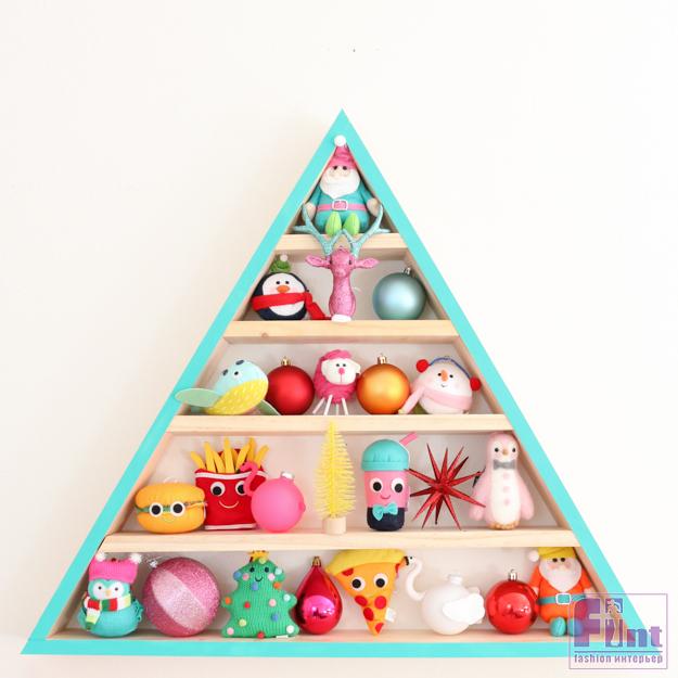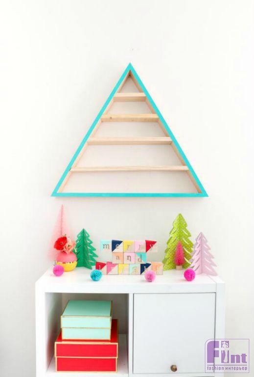 Тем, кто хочется порадовать близких новогодними подарками и декором собственного изготовления, готовиться к праздникам лучше заранее. Как на счёт оригинальной треугольной полочки, которая может заменить традиционную ёлку или станет отличной витриной для детских поделок? Сделать полочку несложно, при этом, она будет отлично смотреться в интерьере и после праздников.