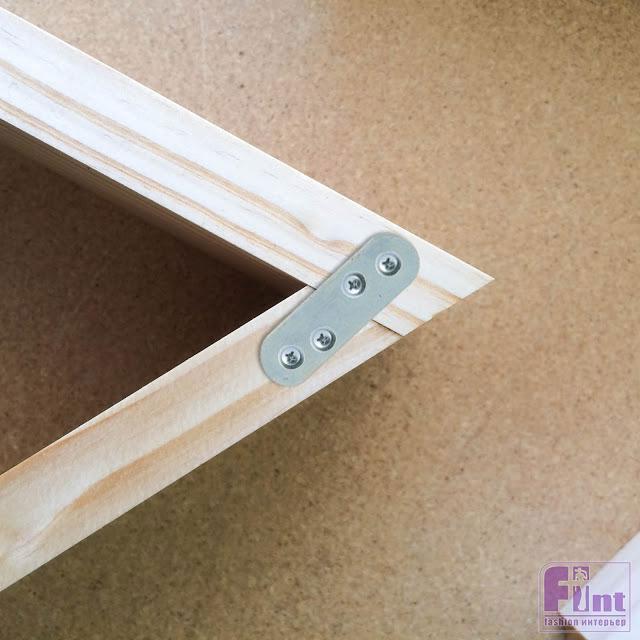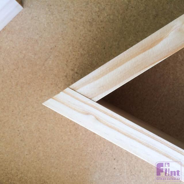 Материалы и инструменты: деревянные рейки из неокрашенной сосны (длинной 2,5 м для внешней «рамы» и около 2 м для «полочек»); клей для дерева (ПВА); торцевая ножовка по дереву; акриловая краска; грунтовка (по желанию).