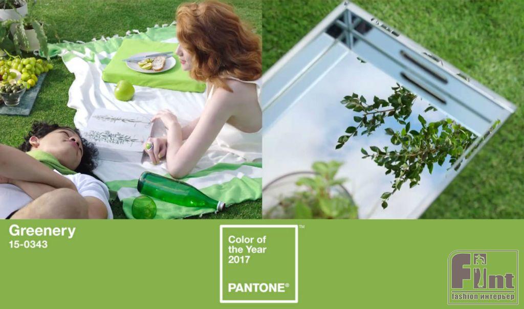 Главными в 2016 году были оттенки «розовый кварц» и «голубая безмятежность», в 2015-м — тон «марсала». Теперь в 2017 году нам предстоит ориентироваться в дизайне интерьеров на этот жизнеутверждающий и сочный оттенок зелёной палитры «Greenery».