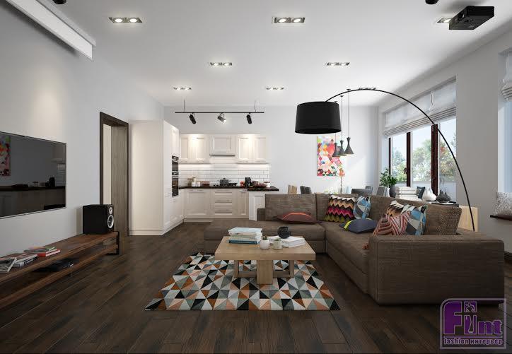 По желанию заказчиков основой интерьера стал скандинавский стиль: светлые стены, в отделке использованы натуральные материалы — настоящий камень и дерево. Мебель также сделана в основном из индонезийского тика на заказ, часть мебели — дизайнерская. Акценты расставлены при помощи интересных элементов декора и предметов искусства.