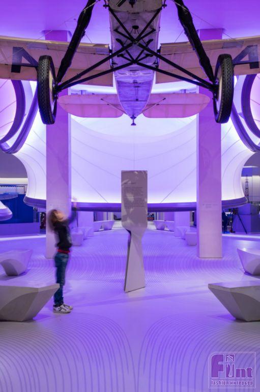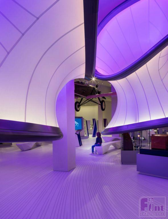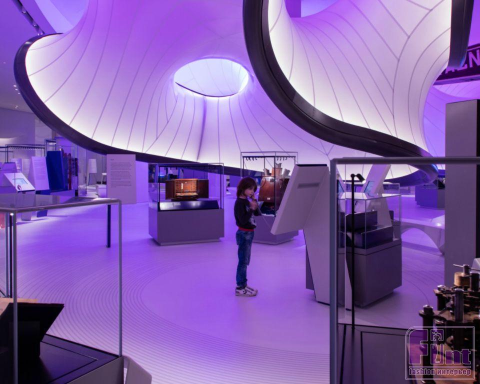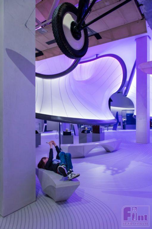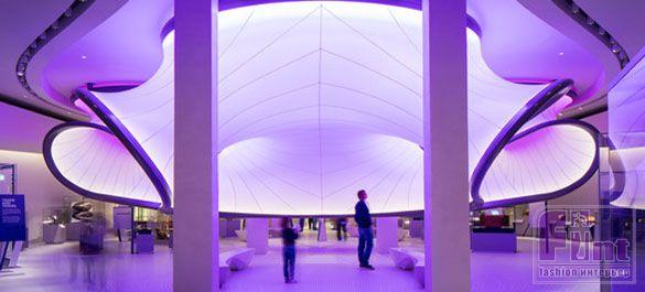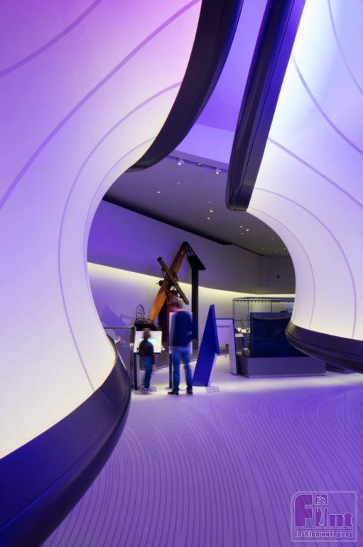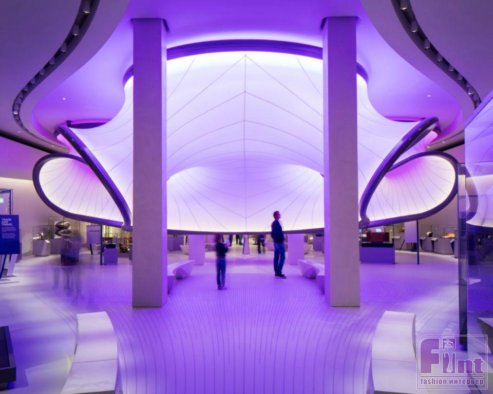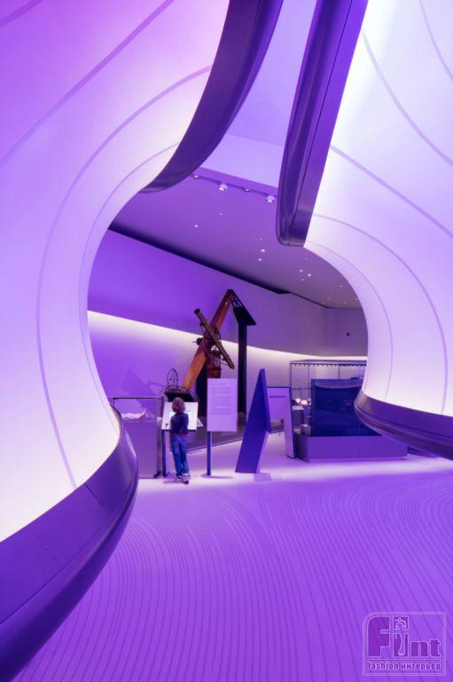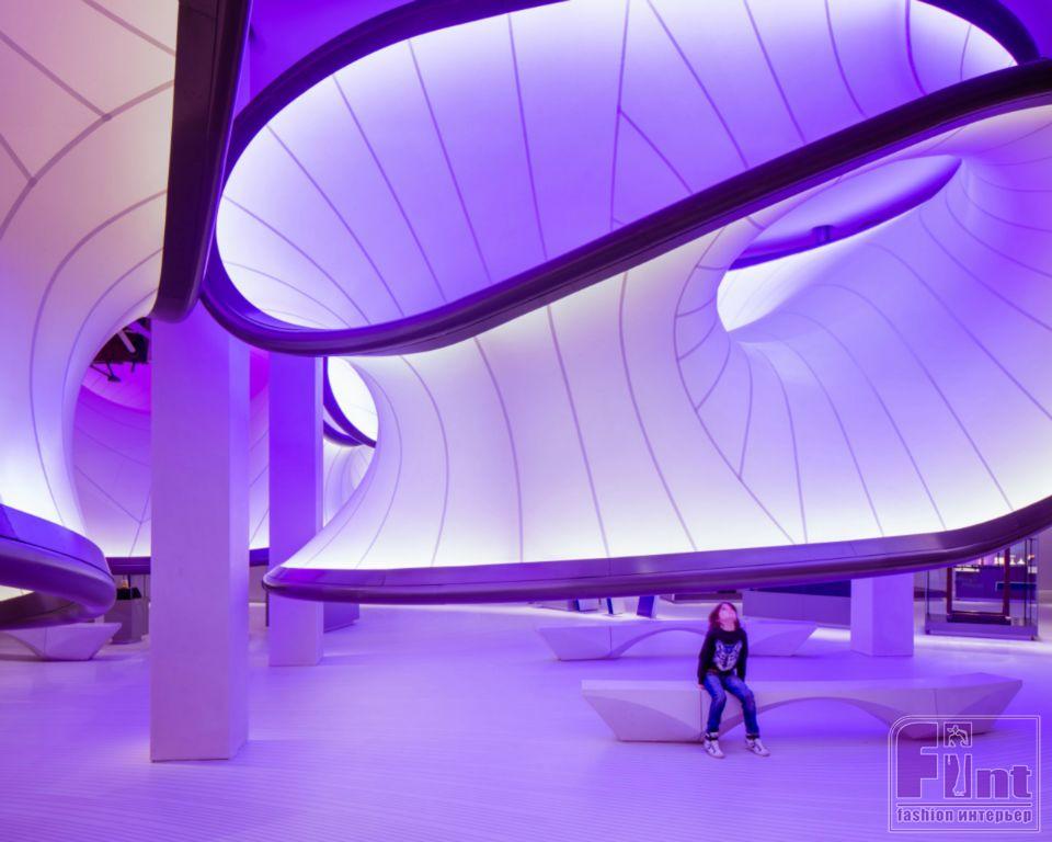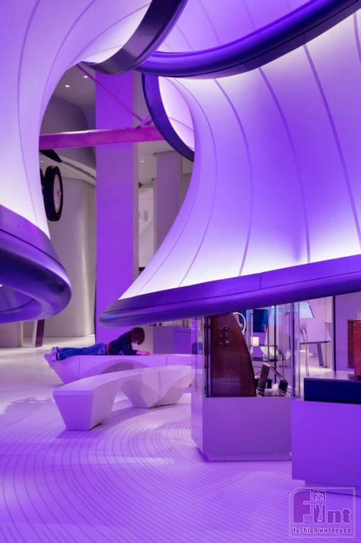 «Большие пропорции в дизайне этого пространства показывают наше восхищение математической логикой и геометрией. Математика делает возможным переосмысление понятий формы и пространства», - пишут архитекторы. Фирменный знак бюро - обтекаемые формы и плавные линии - получают здесь свое научное обоснование. А использование в оформлении фиолетовых оттенков подчеркивает творческий характер точной науки.