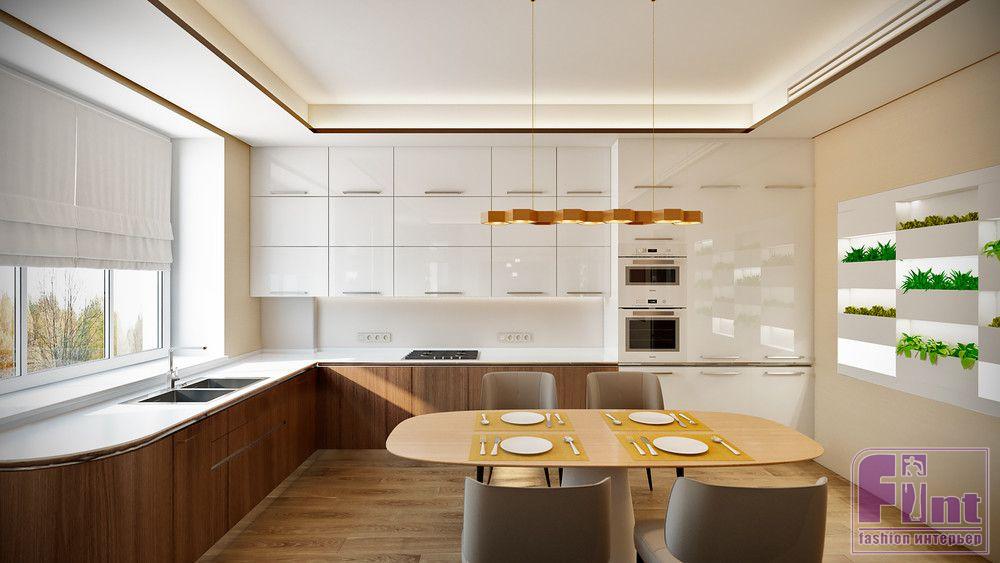 Работа над общественной частью дома - кухней и гостиной - сопровождалась необходимостью обыграть изначальные технические недочёты постройки. «Один выпуск канализационного стояка и подвод газовых труб оказались на самом видном месте в кухне над окном, - объясняет автор проекта. - В результате пришлось применить карнизный потолок, который значительно больше опущен в гостиной, чем этого требовалось бы из эстетических соображений».