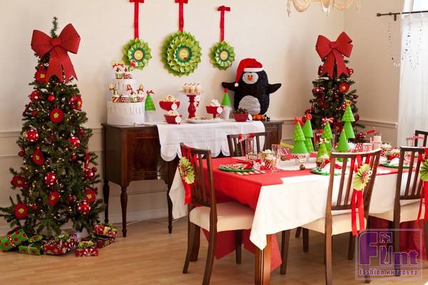 Прежде всего, выберите базовый цвет оформления вашего праздника. Дом к Новому Году может быть украшен в характерных для зимнего времени года красках — пастельных, голубых, красных, коричневых или зеленых. Выбирая подходящий цвет, учтите, что он должен гармонировать с интерьером дома. Определившись с базовым цветом оформления, добавьте дополнительные акценты: к примеру, украсьте скатерть и ёлочные игрушки серебряной или золотой краской. В этом году в новогоднем декоре обязательно должны присутствовать яркие цвета, ведь символ наступающего 2017 года — это красный или огненный петух! Как известно, петух – деревенское животное, поэтому приход года Петуха в ваш дом замечательным образом подчеркнут детали деревенского стиля. На кухне – плетёные корзинки и посуда из глины и керамики, в столовой – натуральный текстиль с изображением нашего героя, в гостиной – вазоны с пшеницей или подсолнухами.