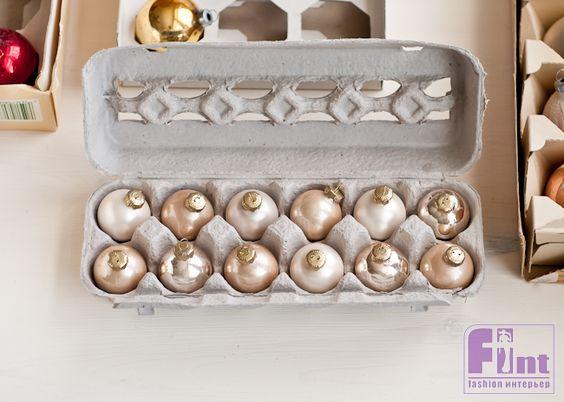 Присмотритесь внимательно к таким ёмкостям, как поддон для яиц или одноразовый пластиковый контейнер для продуктов питания. Обычно, такие вещи незамедлительно отправляются в мусорное ведро, но ведь их можно использовать для хранения ёлочных украшений.