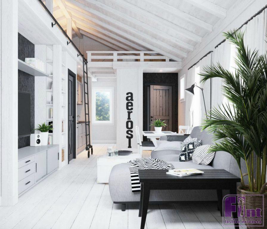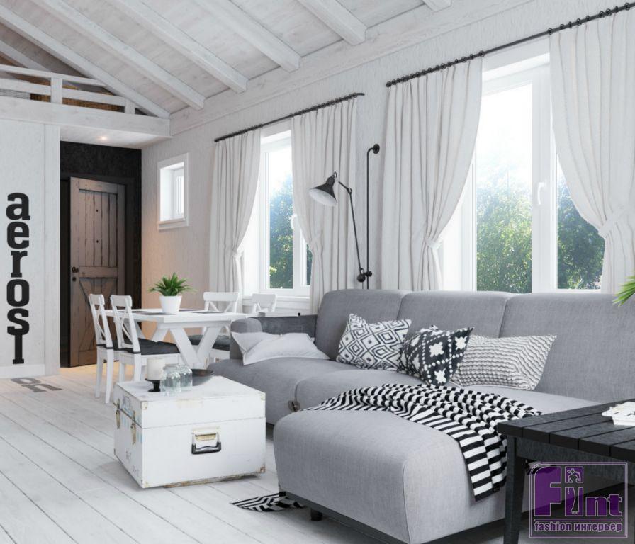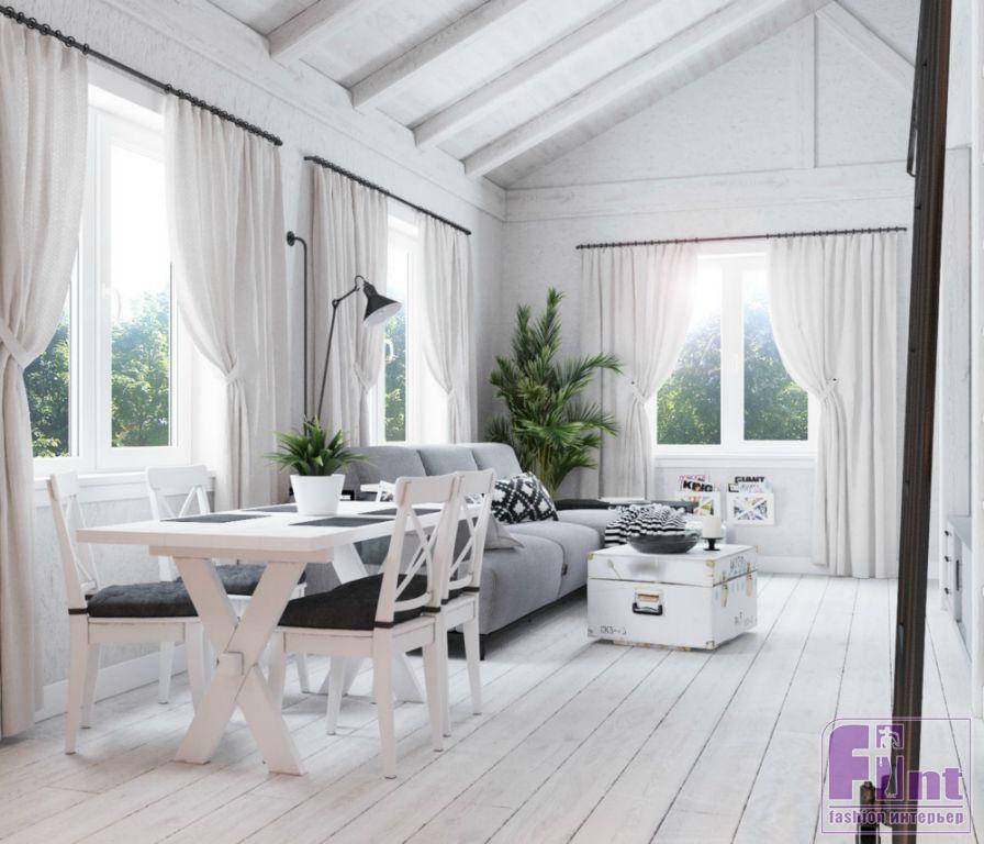 Интерьер дома выполнен в лаконичном скандинавском стиле. С помощью декора подчеркнули близость к природе. Натуральный текстиль создал необходимый семье уют. Мебель сделана на заказ по авторским эскизам. Кухня выполнена целиком из влагостойкой фанеры, столешница - из бетона. Помимо мебели, выполненной на заказ, в проекте также есть обстановка ИКЕА: например, стол со стульями на кухне.