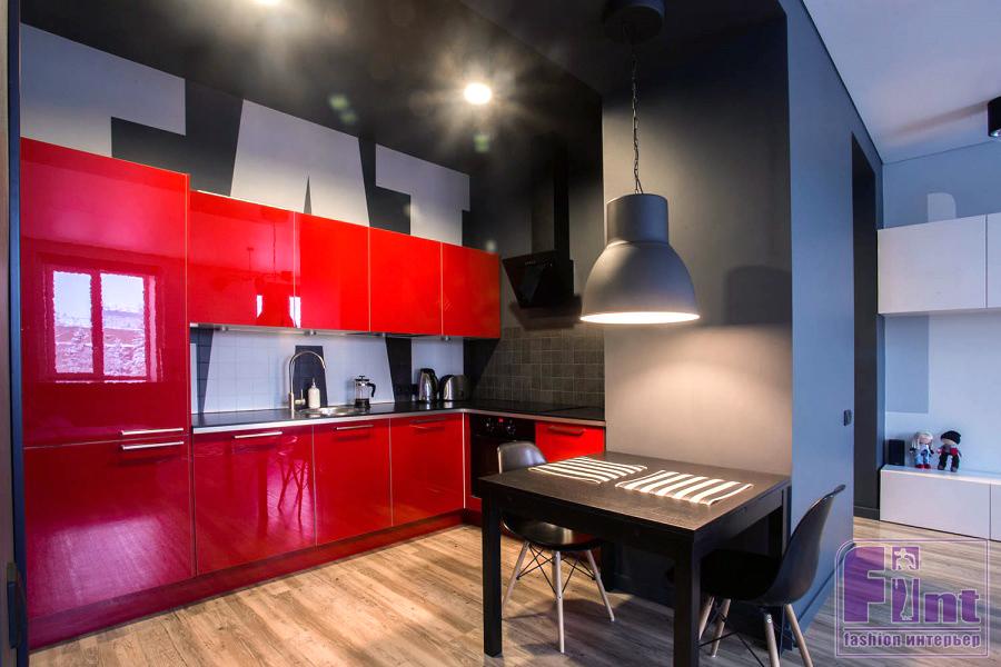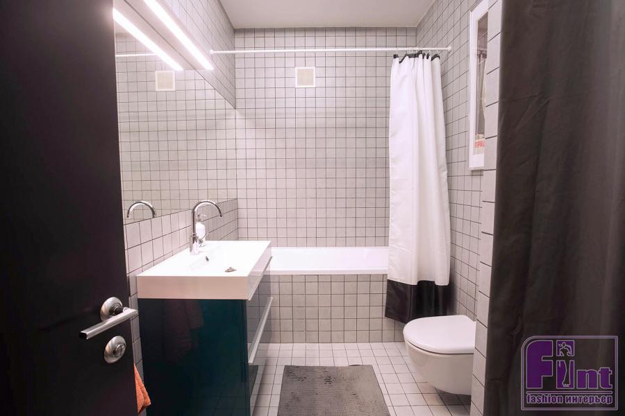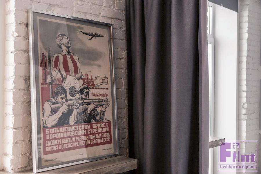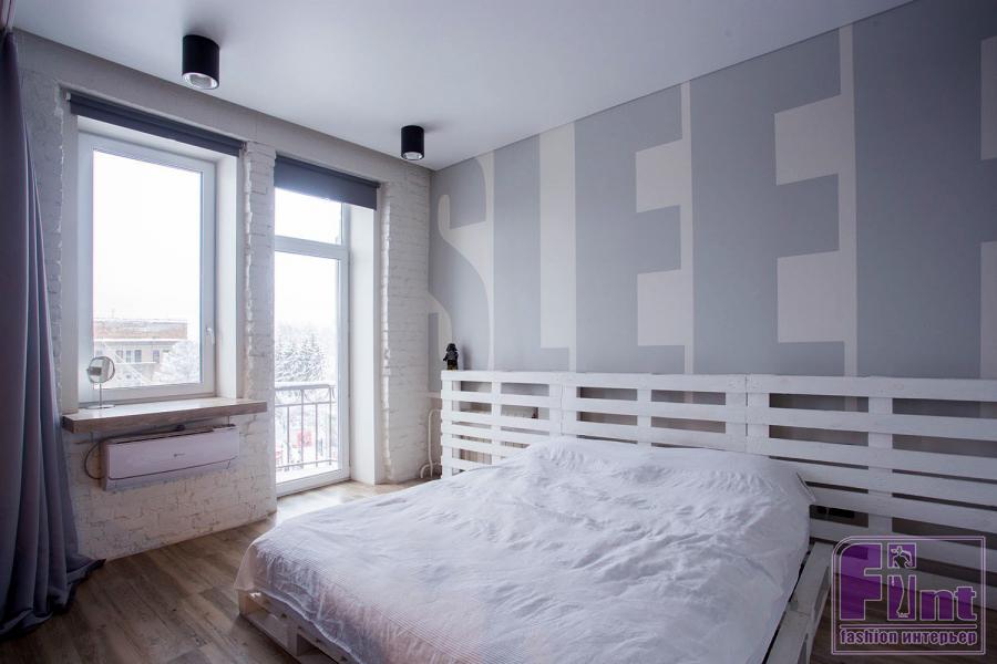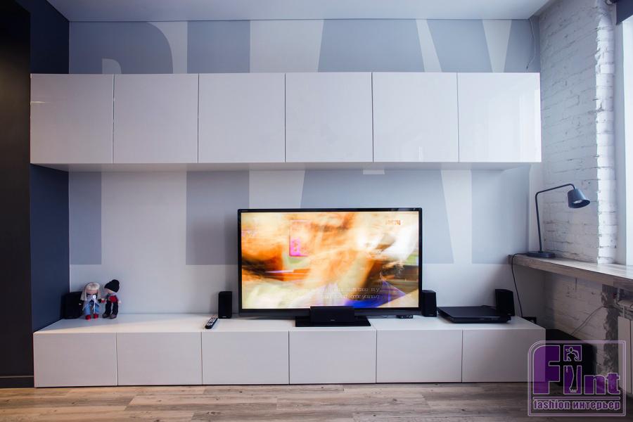 Все работы в квартире выполняли строители. Сергей и его девушка Светлана сами только красили стены, вырезали большие буквы для трафаретов на стенах и клали на пол ПВХ-плитку. В разных зонах квартиры появились надписи: в гостиной это Play (Играй), в спальне — Sleep (Спи), на кухне — Eat (Ешь). «Мы сделали такую концепцию, чтобы во всех комнатах прослеживалась общая идея. Мы все-таки молодые, решили поприкалываться. Плюс, большие буквы визуально увеличивают пространство».