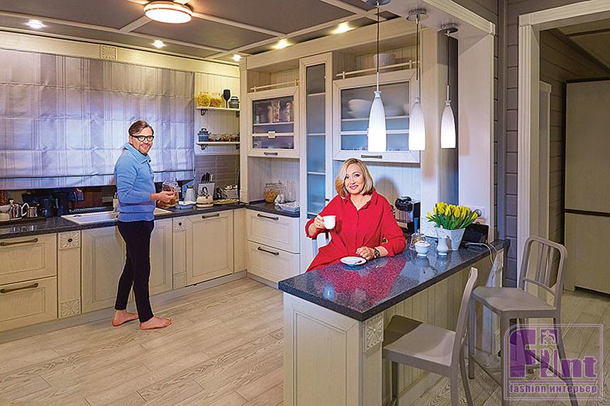 В поселок около Звенигорода Такменёвы попали случайно. Услышали про него, приехали посмотреть и сразу влюбились в этот дом, хотя в нем были только стены и крыша. Но планировка оказалась такой, как Такменёвы хотели. Второй свет (когда нет части потолка между этажами) создает воздух и ощущение простора в гостиной, и это позволяет чувствовать, что ты за городом. Площадь дома – 200 квадратных метров, но он кажется большим. Вадим и Лена так стремились сюда въехать, что сразу начали строительство, а им ещё два месяца не давали ипотеку на покупку дома. Вадим смеётся, что так быстро, как они, ремонт не делал, наверное, никто. Купили дом в ноябре 2015 года, въехали уже в марте, а в мае были посажены деревья, кусты, засеян газон.