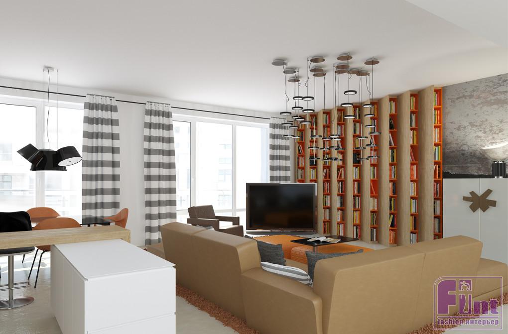 Динамичный дизайн интерьера квартиры для одинокого молодого человека