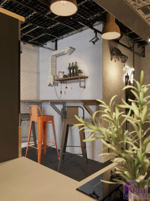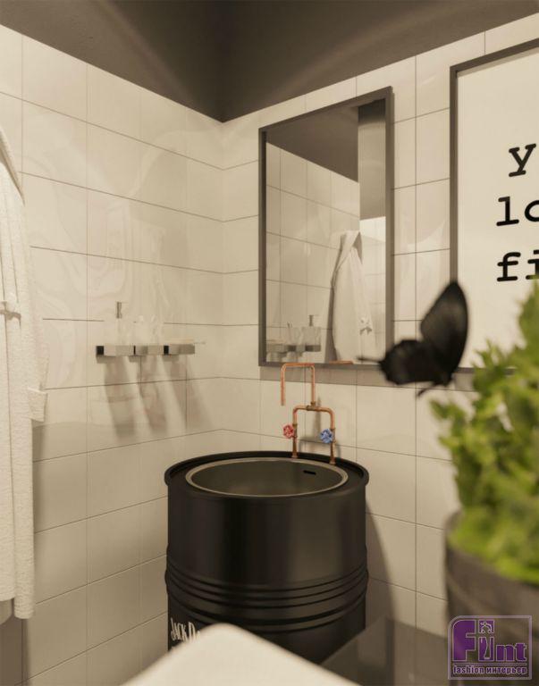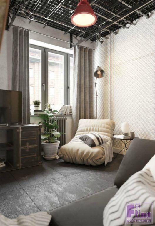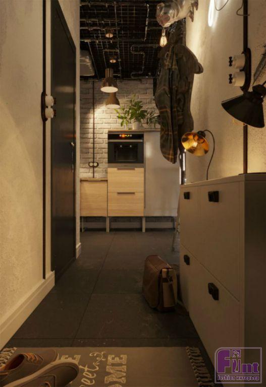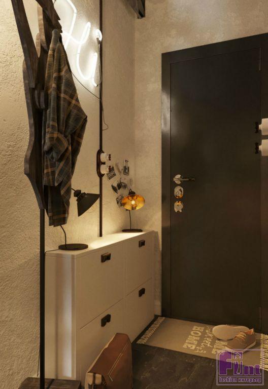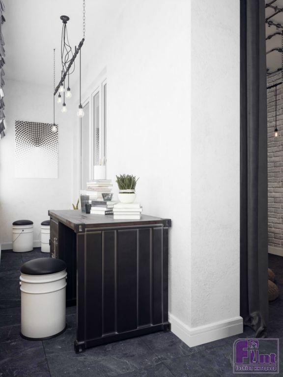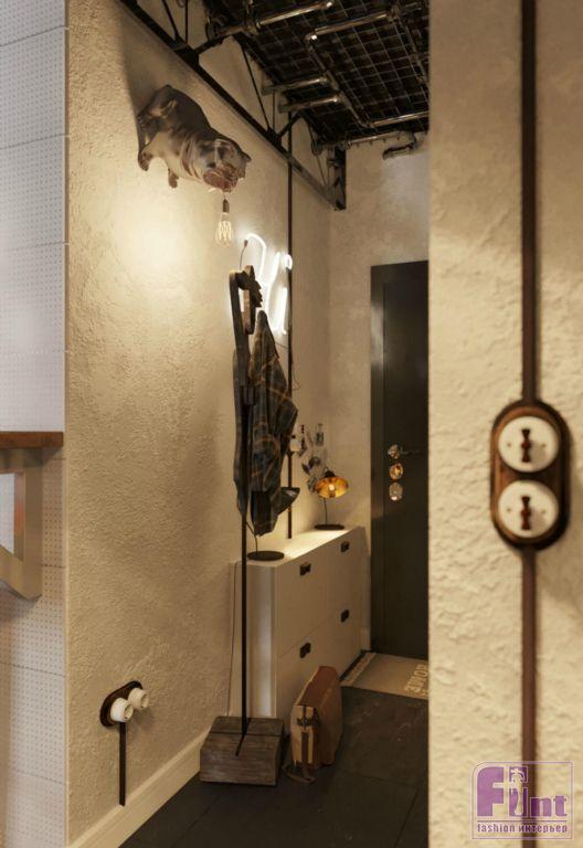 Перед дизайнерами по интерьерам Анной Лопаткиной и Анастасией Окульской, создавших в 2014 году своё творческое объединение «AnArchi», стояла задача проектировать для молодого человека интерьер в стиле лофт со всеми свойственными «фабричному» дизайну приметами обстановки: открытыми коммуникациями, металлическими элементами потолка и прочими «грубыми» фактурами.