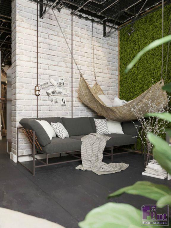 Получившееся пространство вполне вписывалось в стандартное определение лофта, однако на этом Анна и Анастасия решили не останавливаться. «Мы решили внести разнообразие в отделку и к брутальному кирпичу и штукатурке под бетон добавили стабилизированный мох», - рассказывают авторы проекта. В результате в квартире появилась «живая» стена, а вместе с ней и целый «зеленый» уголок для отдыха, дополненный минималистичным диваном и ветками вербы в вазе.