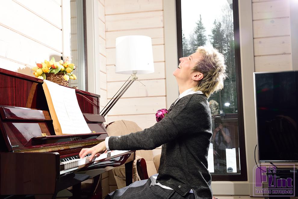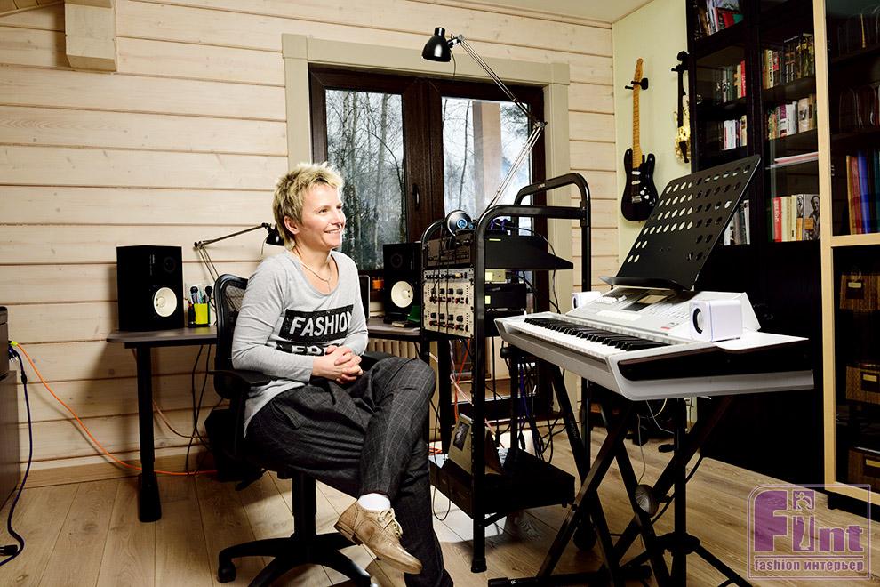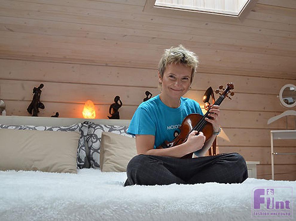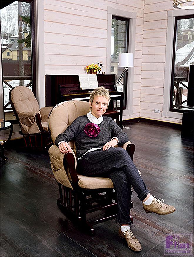 Чтобы не заслонять пейзажи, Светлана решила обойтись без штор. «Мне так хотелось - больше солнца, воздуха, мечтала смотреть на сосны, и чтобы ничто не мешало при этом, - объясняет она. - Вообще, я давно рисовала себе такую картину: сидя в кресле-качалке, морозным вечером я пью чай и подбрасываю поленья в огонь. А рядом инструмент. Так и получилось. В новый дом я хотела привезти всё новое. Теперь у меня здесь есть недавно приобретенное японское акустическое пианино, которое внешне напоминает мое старенькое фортепиано из детства со скромным названием «Тверца». Кроме деки со струнами, в нем есть электронная начинка. Играю - и сама себе завидую».