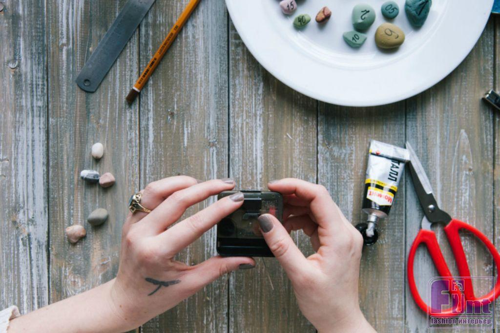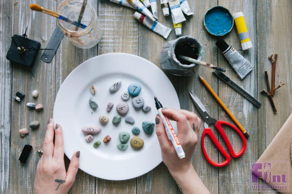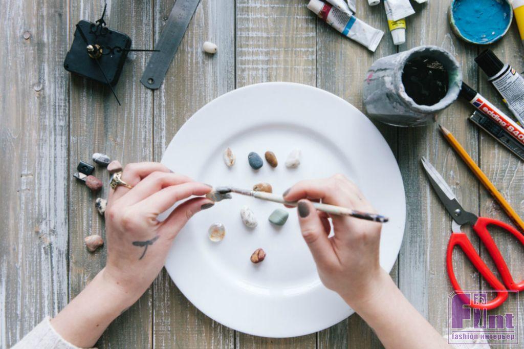 Шаг 3. Красим камушки для настенных часов и рисуем на них цифры