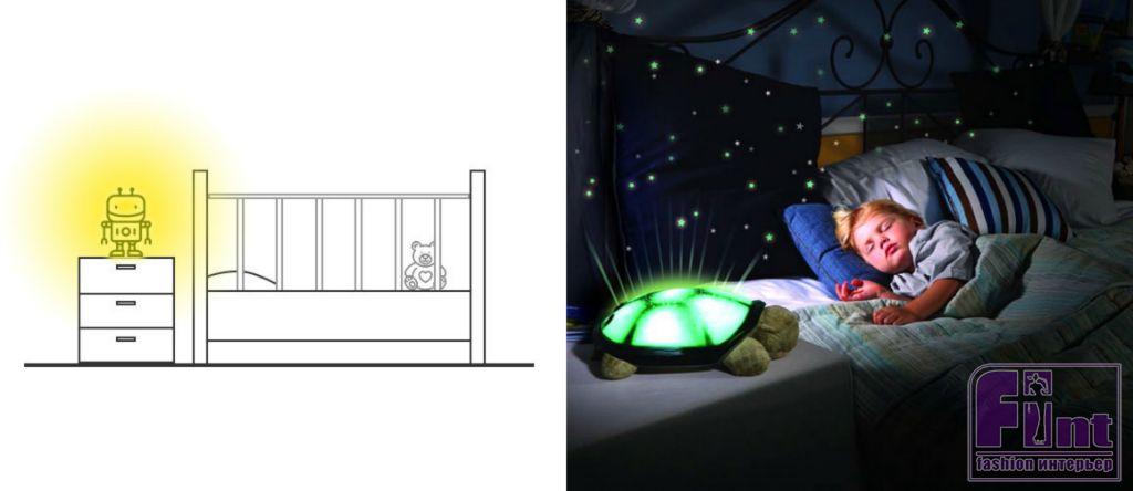 Мощность ночника не должна быть большой, чтобы не мешать сну. Обратите внимание на новые модели светильников в форме игрушек, которые светятся в темноте – они дают мягкий свет и обязательно понравятся детям.