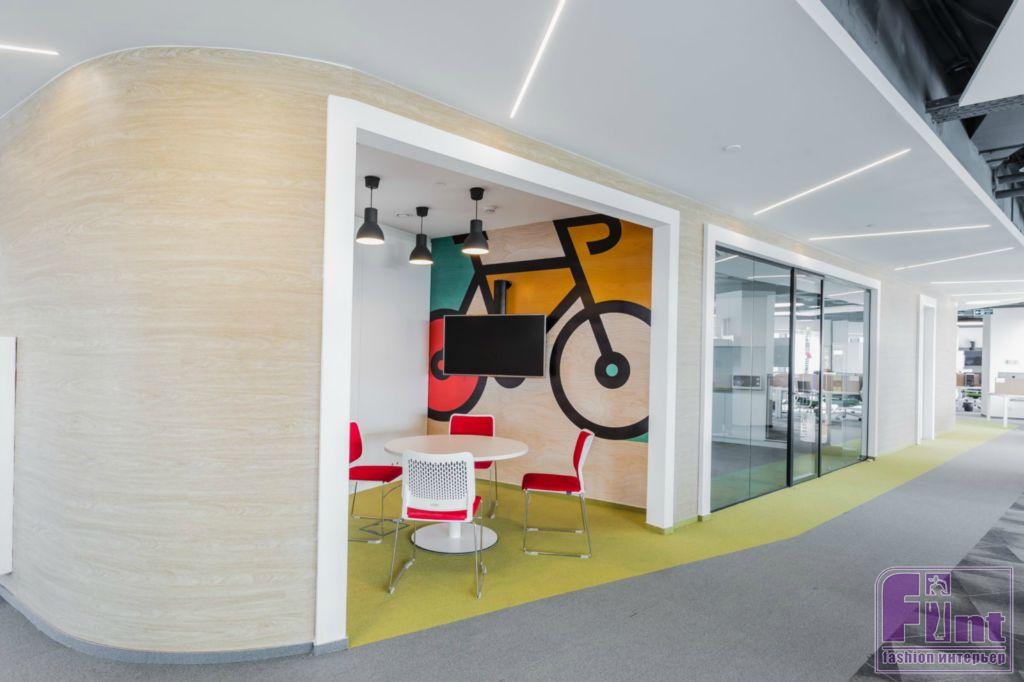 Ключевой задачей дизайнеры называют создание пространства, где было бы удобно трудиться в актуальном на сегодняшний день формате Agile — особом стиле работе, который подразумевает постоянное взаимодействие всего персонала офиса. Для этого каждую из шести частей офиса оснастили кофе-пойнтом, зоной ресепшн, переговорными комнатами, общими зонами. У руководителей нет отдельных кабинетов — они сидят вместе со всеми сотрудниками в оупен-спейс офисах.