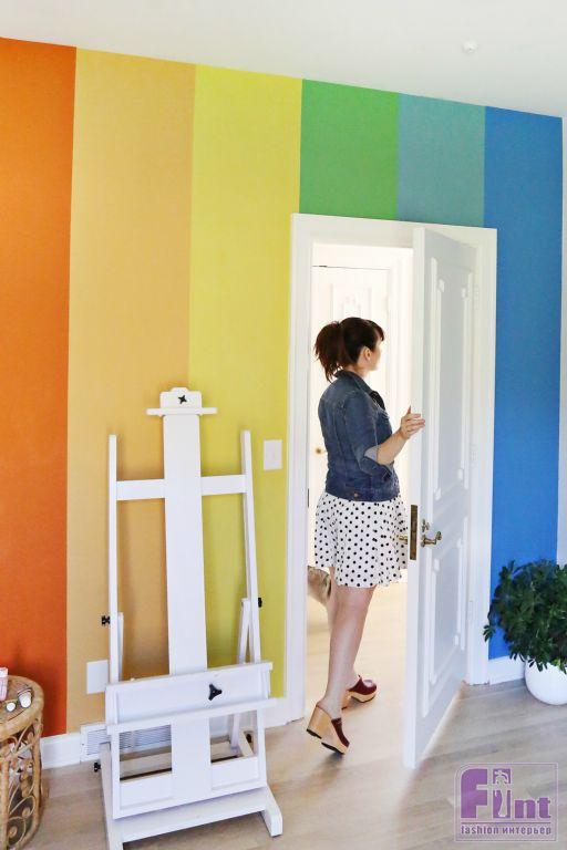 Не секрет, что многие дизайнеры любят белые крашеные стены. Белый цвет – безусловно, стильное решение для интерьера. Важно, чтобы его не стало слишком много. «Разбавить» монотонность белого цвета в интерьере поможет акцентная стена в радужных цветах, которую без особого труда можно сделать своими руками.