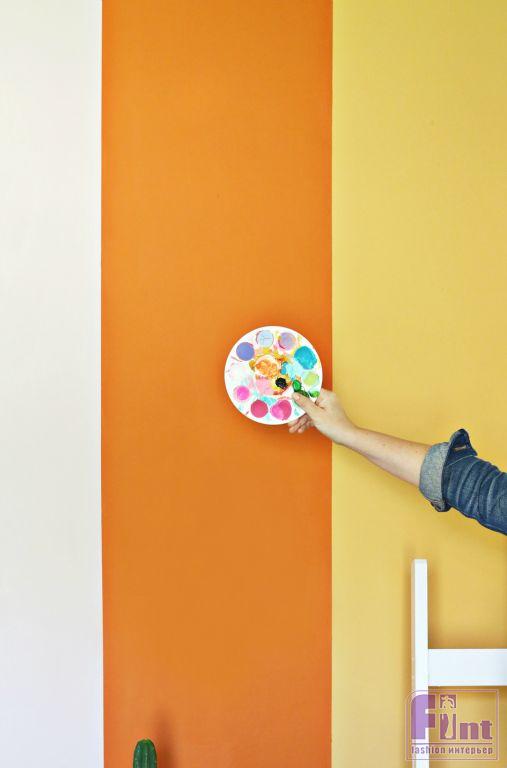 Для создания акцентной стены нам потребуются интерьерные краски нескольких оттенков. Для интерьера лучше всего выбирать полуматовые (шелковисто-матовые) или полуглянцевые краски, поскольку именно краски с такой степенью глянца лучше всего подходят к обычным интерьерам. Матовые краски – более капризные в эксплуатации и на них активнее скапливается пыль, а глянцевые – слишком ярко «проявляют» все огрехи поверхности.