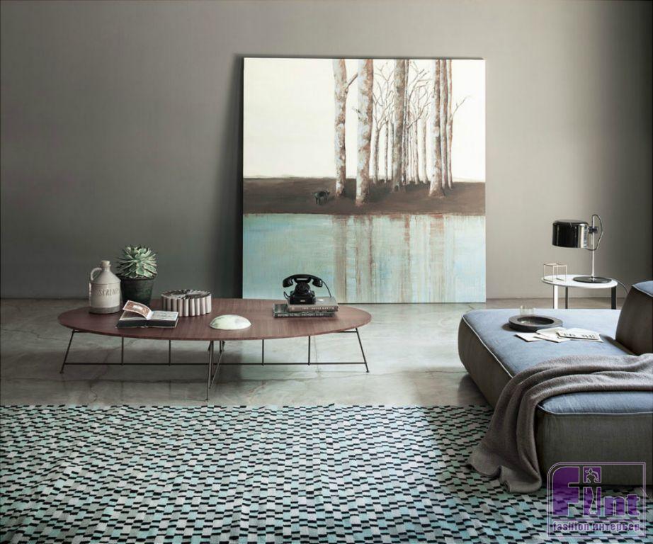 Геометрия распространяется не только на мягкую мебель, но и очень активно — на ковры. Мелкие геометрические узоры и немного потертый, припыленный, несколько даже «побитый жизнью» вид повторяют ту же идею: ищите новое в старом и вечном.