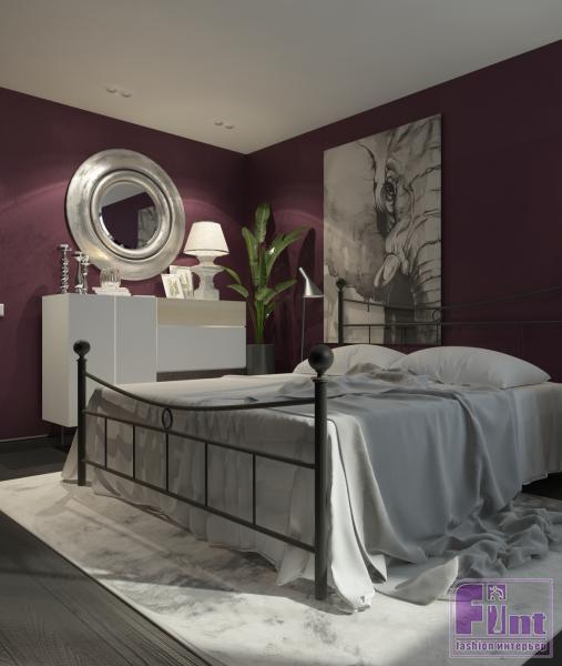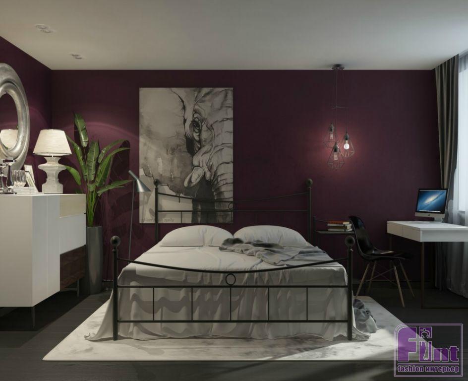 Комната дочери хозяев построена на контрасте сиреневого и белого. При этом, чтобы избежать сумеречного настроения, Елена внесла в интерьер контрастные белые акценты. Комната дочери совмещает в себе спальню, место для отдыха и рабочую зону у окна. Глубокий сиреневый цвет стен отлично гармонирует с кованой кроватью, занимающей большую часть помещения. Белая мебель и монохромный постер на стене создают необходимые цветовые акценты, удачно разбавляя основной тон помещения.