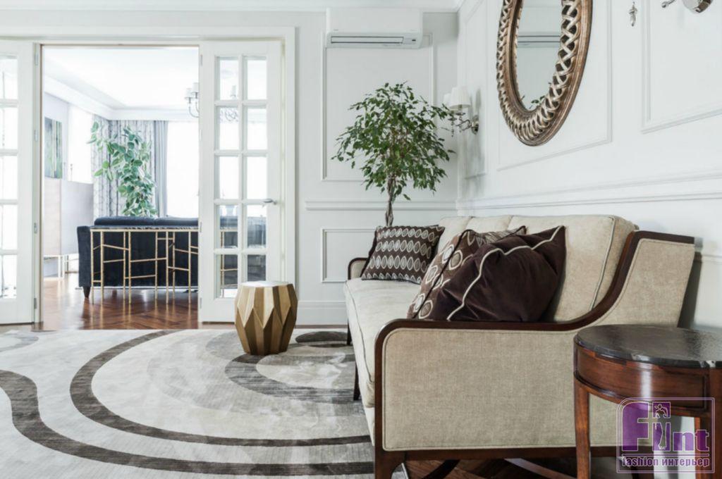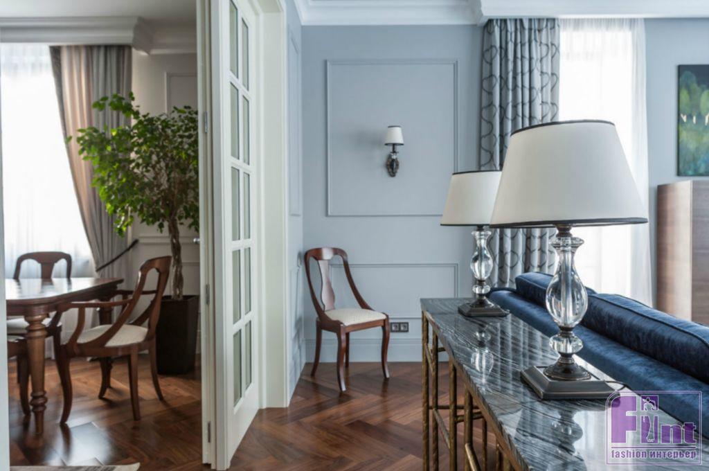 Проект дизайнера Александра Белобородова – это уравновешенный интерьер, построенный на сочетании классических форм, активных узоров и декоративной умеренности. В результате оформление не перетягивает внимание на себя, но превращается в гармоничный фон для семейной жизни и позволяет пространству проявить свои лучшие качества: значительные объемы помещений, анфиладная планировка, высокие потолки и свет, свободно льющийся из больших окон.