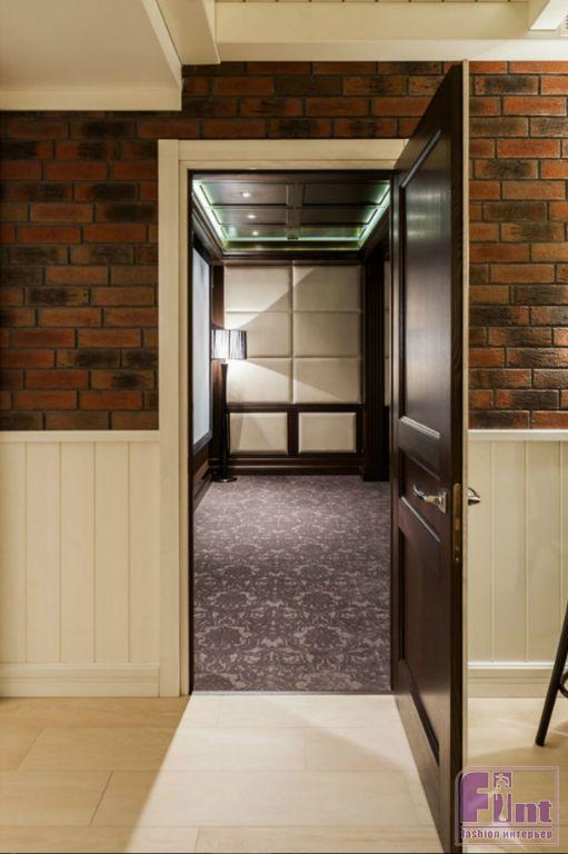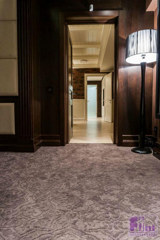 Особый шарм всему проекту придал натуральный паркет тёмного оттенка венге в классической укладке, который использован почти во всех помещениях таунхауса, за исключением кухни и детской комнаты. Изюминка таунхауса – просторный кинозал, спроектированный по всем правилам, применяемым для подобных помещений: обширный диван и огромный экран во всю стену.