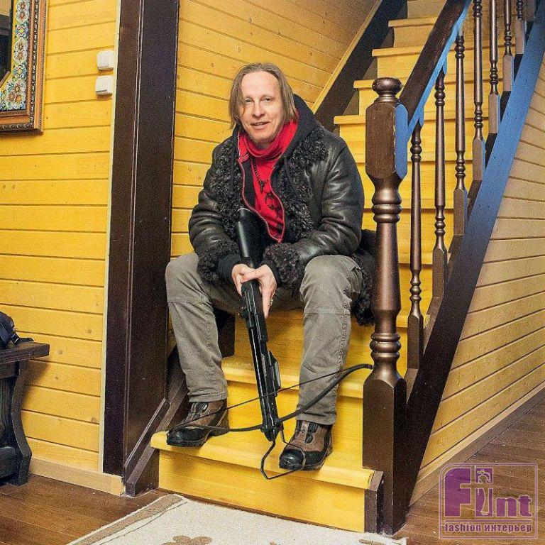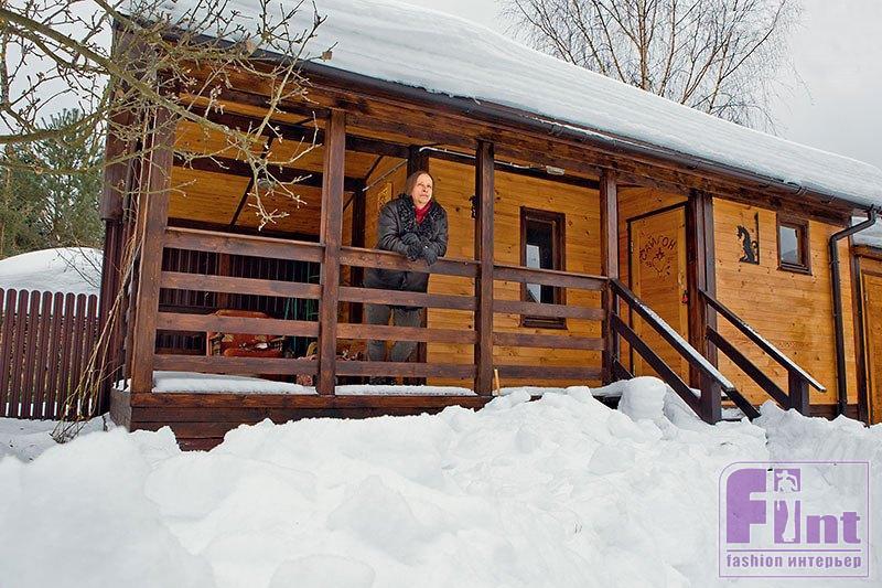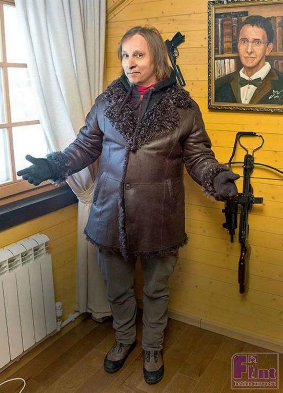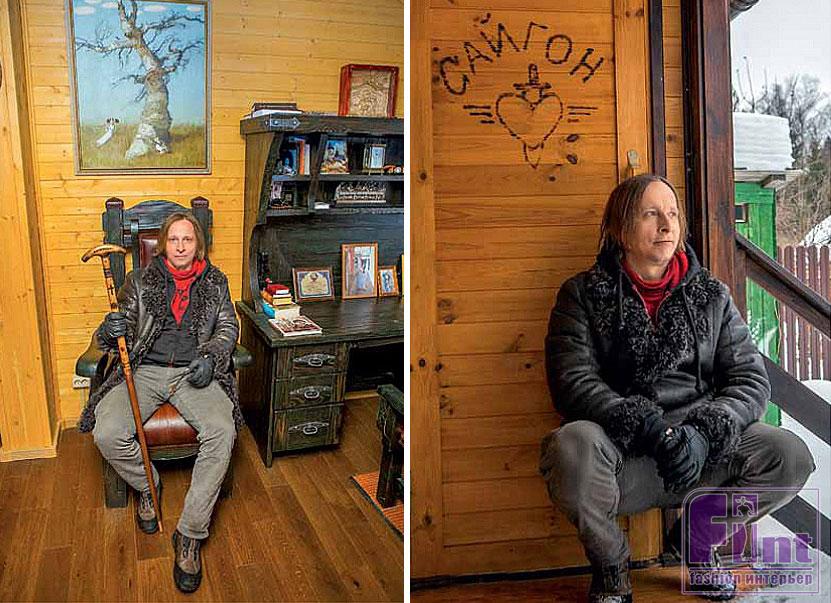 «На даче я счастлив. Здесь тишина! Для многодетного отца - это роскошь. Я могу сосредоточиться, попечатать, поиграть в компьютерные игры, книжки почитать. Это всё на волчьих шкурах. Покупал их, когда ездил выступать на Север, их продают рядом с дорогами. Потом в ателье попросил сшить покрывало. У меня прямо своё логово на даче. Я тут преображаюсь: хожу во фронтовой телогрейке на голое тело, в ватных штанах и сапогах. Зимой надеваю нескромную шубу, как у пуэрто-риканского сутенера», — рассказывает Иван Охлобыстин.