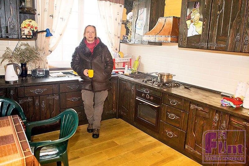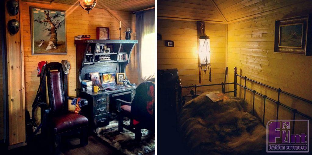 «У нас получился такой техасский дом, где ковбой может сидеть, положив ноги на перила веранды. Ещё мы увеличили комнату на первом этаже, где живут родители. В комнате Оксаны одно окно выходит на улицу, второе — внутрь дома. Его можно закрыть занавесочкой, а можно открыть и просматривать всё пространство дома, наблюдать зону у стола, у печки. Кстати, именно Оксанка придумала, что в доме обязательно должна быть русская печка. Я-то хотел поставить цивилизованные буржуйки разных объемов. Они красивенькие, при них сидеть с бокалом вина хорошо. Но с точки зрения быта они никакущие. Я теперь фанат русских печек — и дом греют, и готовить в них прекрасно. Но это отдельная архитектура: две с половиной тысячи кирпичей — красные, белые. Пирамида Хеопса… Но вообще, в доме изменения минимальные. Я же понимаю, что нельзя общую конструкцию разрушать. Главный принцип оформления — дерево натуральное, массивное. Кровати кованые, сундуки для одежды, мебель деревянная массивная, чтобы лет через триста на ней мои прапраправнуки баловались» - делится впечатлениями Иван.