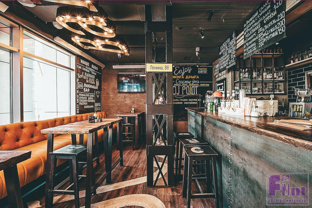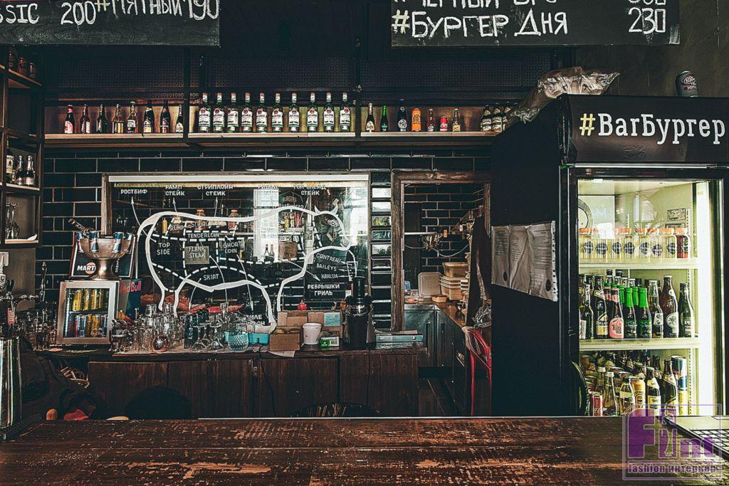 Артемию и специалистам его студии удалось гармонично увязать идею ярких молодёжных вечеринок с иконой фастфуда – бургерами. В студии создали брутальный интерьер, с яркими акцентами. В качестве таких своеобразных «eyecatchers» (предметы интерьера и вещи, за которые цепляется взгляд) в интерьере бургерной «БарБургер» выступают металлические стены, люстра-вывеска, столешницы из толстой амбарной доски и жёлтая полубарная лонгсофа. Стулья авторам проекта достались от предыдущих хозяев. Дизайнеры ALLARTSDESIGN их умело задекорировали: перекрасили в чёрный цвет и сделали авторскую роспись.