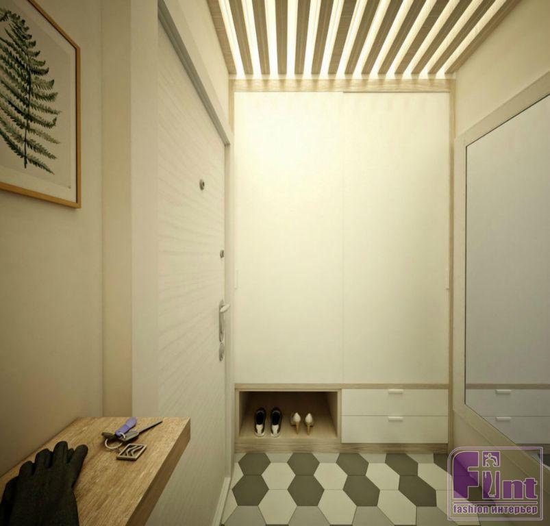 Несмотря на скромные габариты квартиры, дизайнеру удалось деликатно спланировать довольно вместительные места для хранения. В прихожей был смонтирован шкаф-купе с современной начинкой. Обладая внушительным внутренним пространством, шкаф-купе почти незаметен в интерьере прихожей, поскольку его фасады, выполненные на заказ, сливаются с цветом стен.