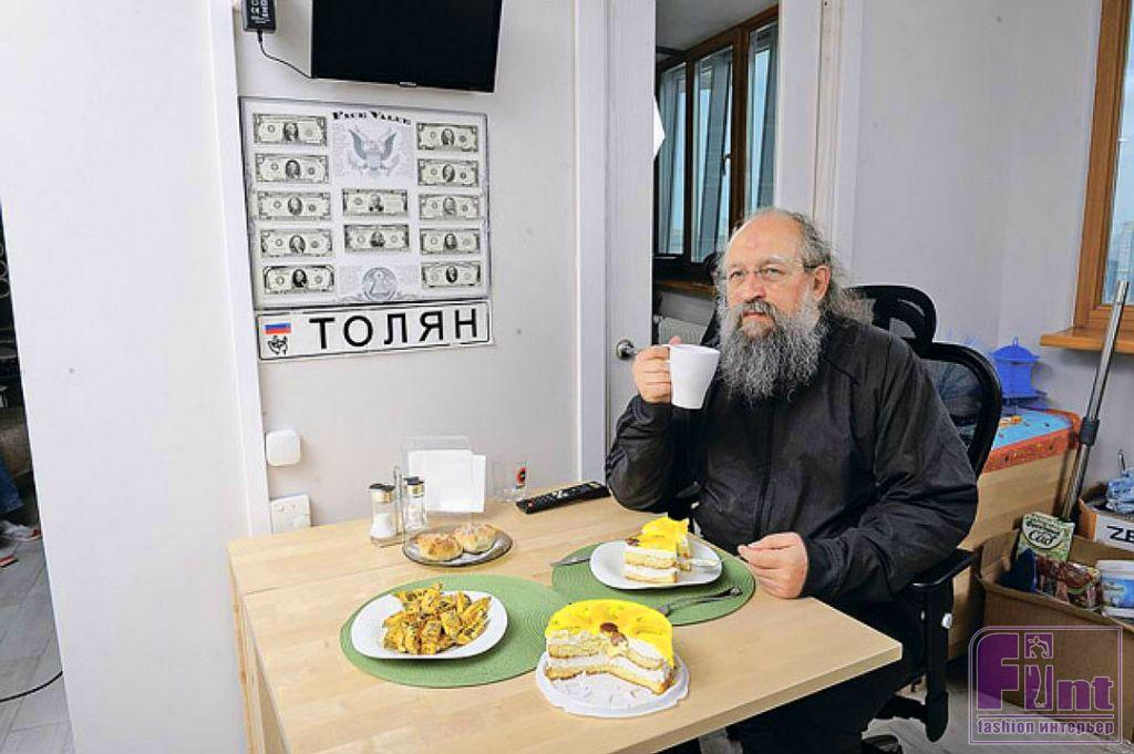 — Квартира была куплена в январе 2013 года, — рассказал Анатолий Александрович. — Изначально мне её приобрели для использования в качестве видеостудии. Оборудованием и оформлением занималась Мария Райхельгауз — профессиональный дизайнер, которая работает над созданием интерьеров для телепередач. К сожалению, те передачи, под которые её покупали, по разным причинам пока не реализованы. И получается, что телекомпания потратила деньги на мои личные нужды, и мне теперь даже неудобно перед людьми... Я здесь поселился с декабря 2013 года, а обустройство квартиры закончили только к середине 2014-го. Да и сейчас ещё время от времени что-нибудь подправляется и дополняется. Например, полки у окна появились только весной 2016 года.