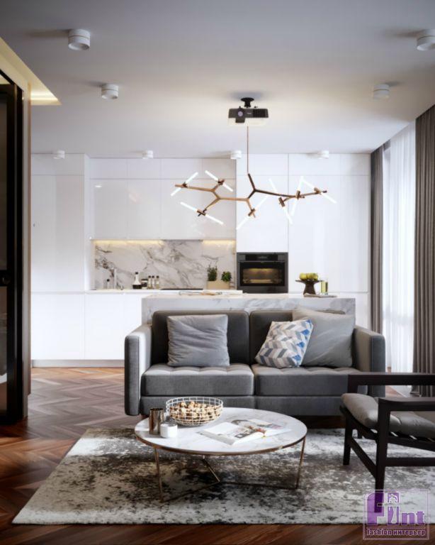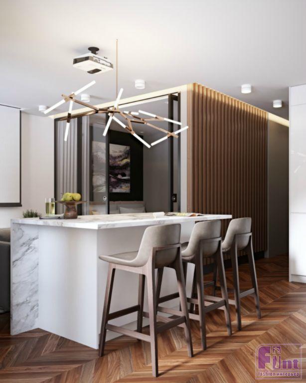 Спроектировать подчёркнуто современный интерьер, уравновесив холодноватую геометрию теплотой натуральных материалов, — именно такую задачу поставил заказчик перед автором сегодняшнего проекта, дизайнером Юлией Прахт.