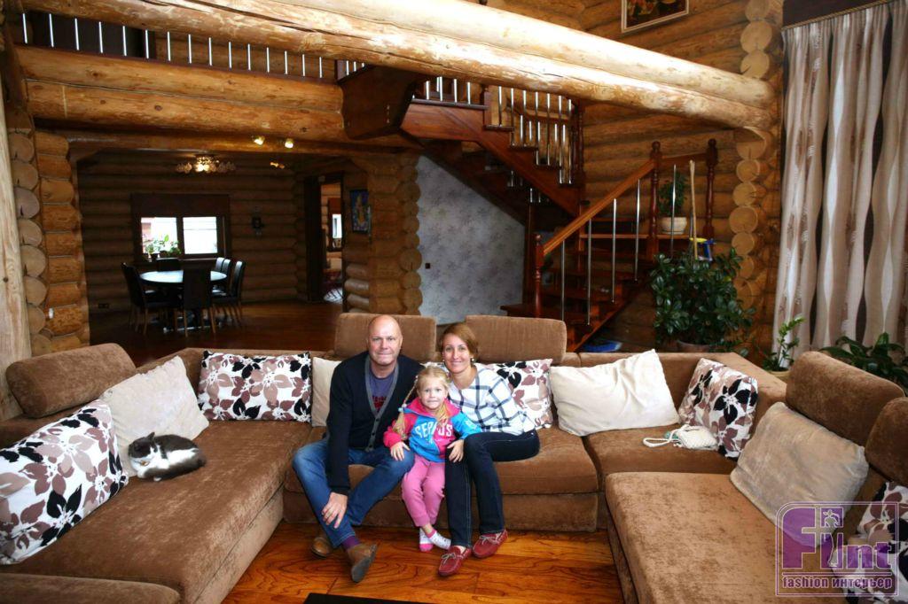 — Мы изначально хотели, чтобы был такой исконно русский сруб, но без боярских деревянных украшений: резных наличников с завитушками, фигурок медведей и прочего, — пояснил Алексей. — Нам хотелось чистого и светлого дерева. Это золотая сосна. И весь дом, когда его освещает солнце, кажется золотым. Кстати, при строительстве дома произошла забавная история. Деревья для него рубили на Валдае, но наш прораб немножко ошибся с размерами — дом получился с каждой стороны на три-четыре метра больше, чем изначально планировалось. И когда рубили брёвна, то мастеровые, видя будущую планировку и размеры, думали, что это будет церковь. Потом, когда посмотрели в чертёж — выяснили, что дом будет одноэтажный, и подумали, что это конюшня. И вот так, в качестве сруба для конюшни, его нам сюда и перевезли на огромных фурах.