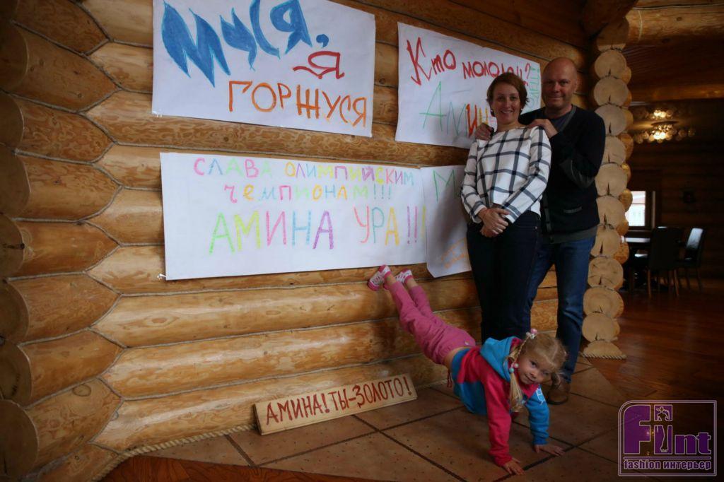 На стене в гостиной невозможно не заметить большие листы ватмана с яркими разноцветными надписями и рисунками — поздравления, адресованные Амине. Они остались с грандиозной вечеринки, устроенной Алексеем по случаю триумфального возвращения любимой супруги из Бразилии, где её подопечная Маргарита Мамун в упорной борьбе выиграла олимпийское золото.