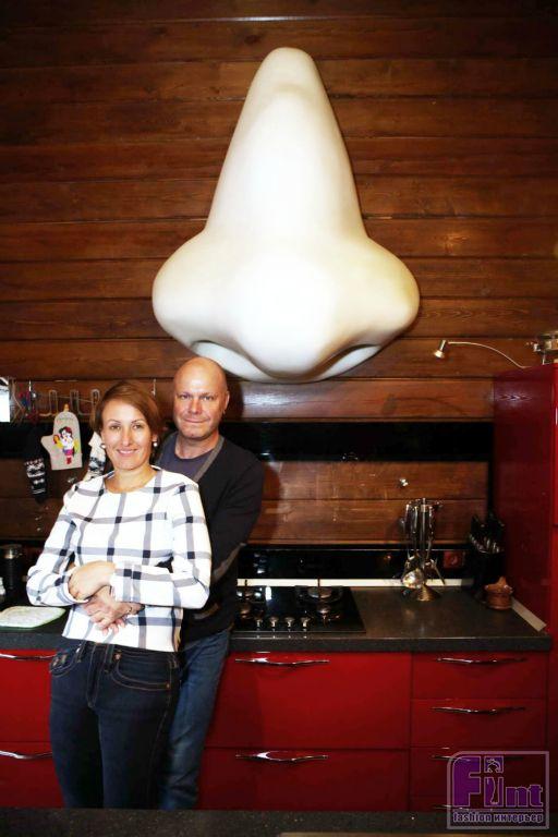 — Повесить здесь нос — это моя личная идея, — похвастался музыкант. — Мне показалось, что так будет оригинально: там внутри спрятана вытяжка, и он «нюхает» всё, что готовится на плите. Конечно, многим на ум приходят ассоциации и с одноименной повестью Николая Гоголя, и с творчеством художника Сальвадора Дали. Но лично я такого глубокого смысла сюда не вкладывал.