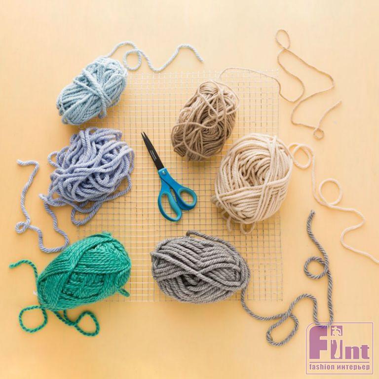 Для работы нам потребуется всего лишь несколько материалов и инструментов. Первым и главным материалом будет простая металлическая сетка с ячейкой около 10 – 15 мм. Такую сетку можно довольно легко найти на любом строительном рынке или в профильном магазине, поскольку она используется при штукатурных работах в качестве армирующего материала, защищающего поверхность от трещин. Далее следует .провести ревизию своих запасов толстой цветной пряжи, или наведаться в ближайший магазин товаров для рукоделия, чтобы подобрать толстую пряжу в сочетаемых оттенках и цветах. Для работы с пряжей нам потребуются ножницы, а для того, чтобы повесить наше панно на стену – пара шурупов с дюбелями, отвёртка и электрическая дрель. Кстати, панно вовсе не обязательно вешать на стену. Его можно использовать в качестве украшения интерьера и поместить на прикроватный столик, комод или рабочий стол, просто прислонив к стене.