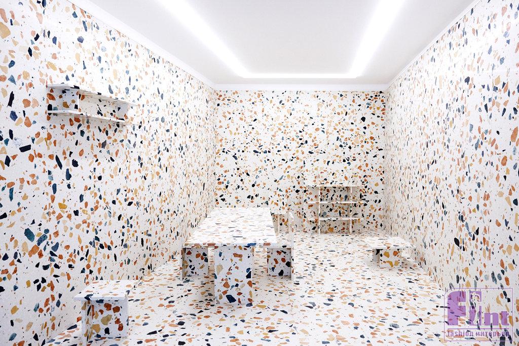 Мрамор всё ещё актуален. Его влияние в интерьере по-прежнему велико, а позиции устойчивы. Тем не менее, можно наблюдать один любопытный сдвиг — появление в дизайне мотивов терраццо, переработанных, при этом, на современный манер. «Венецианский терраццо» (ит. terrazzo alla veneziana) — это очень древняя техника изготовления наливных мозаичных полов из натуральных материалов: извести, цемента, камней, стекла и кусочков мрамора.