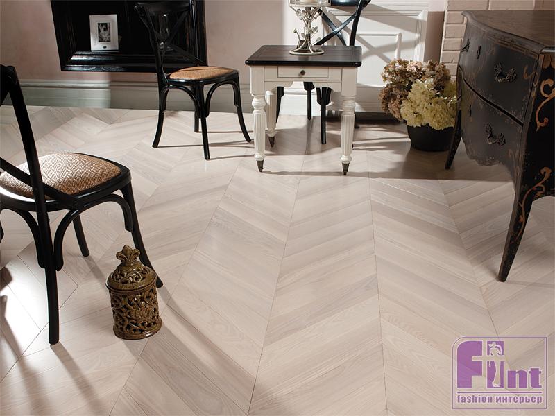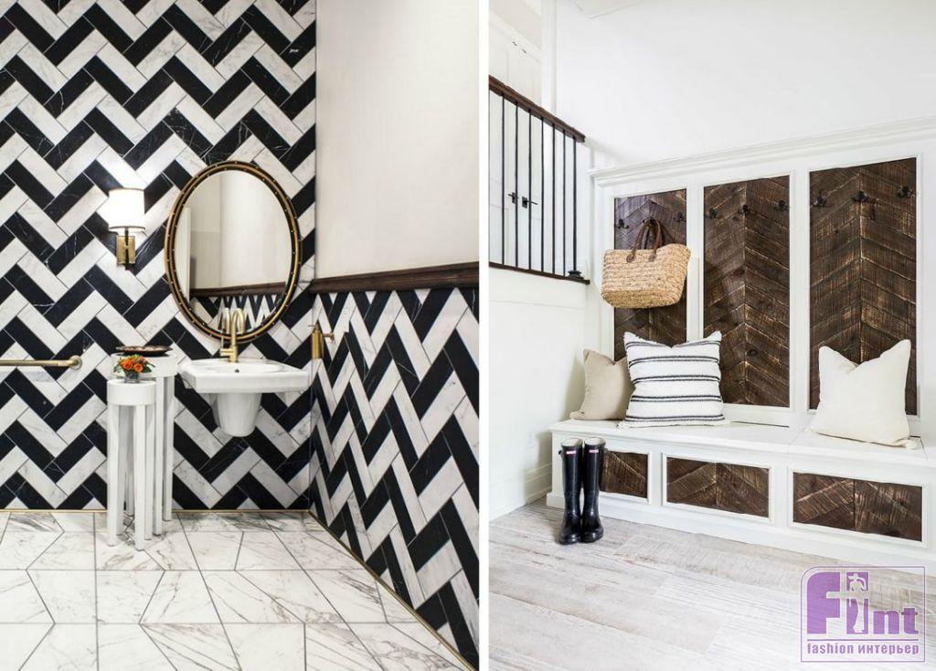 Обратите внимание, что ёлочка бывает двух видов: английская (herringbone, или классическая) и французская (chevron). Зигзаг английской ёлочки несколько сдвинут, потому что детали имеют прямоугольную форму, а французская имеет строгие прямые линии соединения полос благодаря элементам ромбической формы. «Ёлочные» столы и полы — это далеко не все. Под «ёлочку» дизайнеры в этом сезоне предлагают сделать ещё и стены, причем не важно, плитка это или настенные панели.
