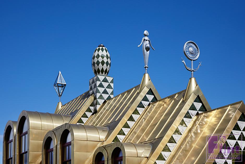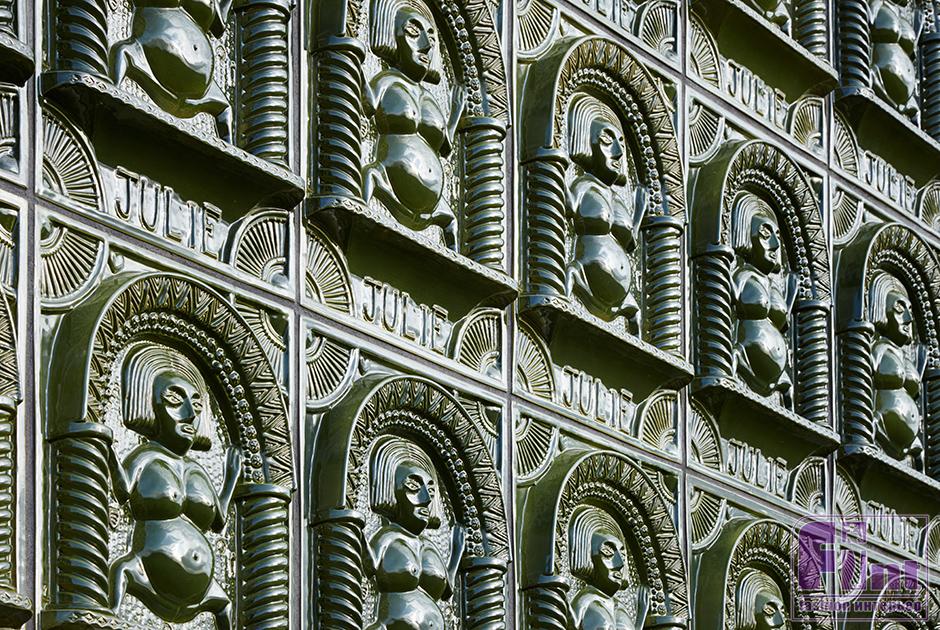 Здание разделено на четыре части, плавно переходящие друг в друга, как в гармошке. Фасады сначала хотели покрыть характерной для народного зодчества Эссекса стуковой лепниной, но остановились на глазированных изразцах. Кровля покрыта золотистым сплавом меди. Сквозь окна проглядывают портреты Джули разных этапов её жизни.