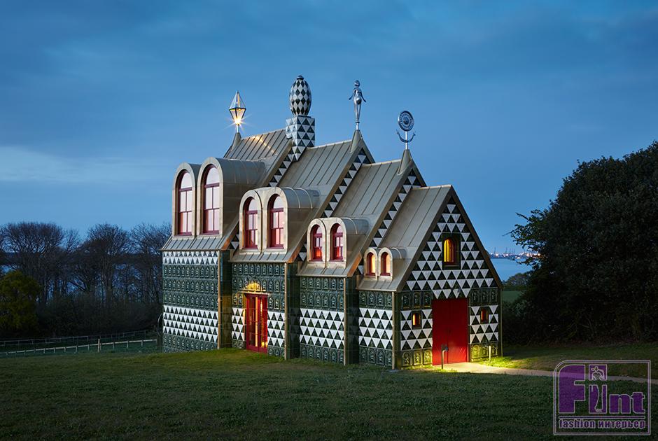 В графстве Эссекс на юго-востоке Великобритании стоит очень необычный «пряничный» домик, ярко выделяющийся, не похожий ни на какое другое здание. Вилла построена по проекту архитектурного бюро FAT и художника Грейсона Перри для проекта Living Architecture. Fashion-int.ru предлагает рассмотреть одну из самых эксцентричных построек Великобритании поближе.
