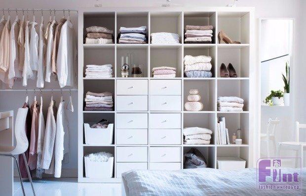 Признайтесь, у вас не всегда есть желание аккуратно раскладывать одежду по полкам после тяжелого рабочего дня. А готовы ли вы это делать регулярно? Стоит только установить открытые системы хранения – и ежедневное развешивание вещей вам гарантировано. Иначе беспорядок так и будет у вас перед глазами.