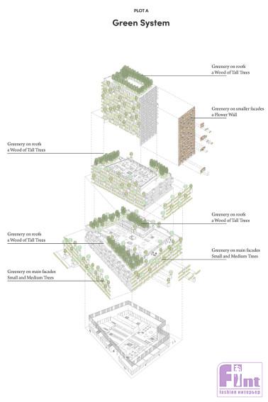 На фасаде башни , высота которой составит 90 метров, в общей сложности разместят 10 000 растений разных видов: 360 деревьев и 9640 кустарников и цветов — равных одному гектару леса. Предполагается, что такой объём озеленения позволит поглощать до 5,4 тысяч тонн углекислого газа из городской атмосферы.