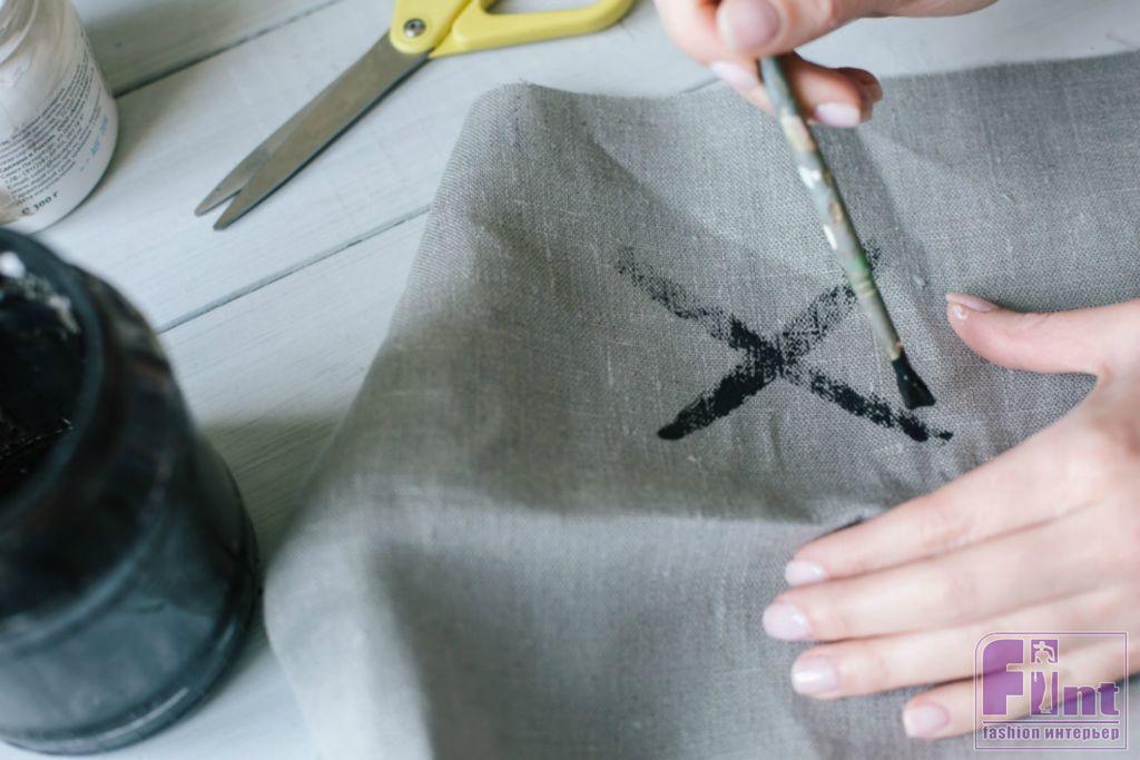 Шаг 1. Раскроите ткань, чтобы получился прямоугольник. С обеих длинных сторон получившейся заготовки отмерьте по 5 см от края, подогните ткань внутрь и прострочите сгибы на швейной машинке прочными нитками. Если за основу гамака взяли однотонный материал, его можно разрисовать красками по ткани. Например, создать легкий орнамент или создать паттерн с помощью штампов.