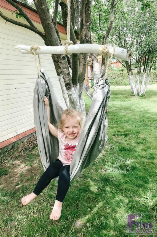 Конечно же, можно купить гамак для дачи в магазине, но если не получается найти идеальный гамак в магазине, и вы любите что-то мастерить своими руками, такое кресло-гамак, без сомнения, добавит уюта в дачный декор. Кстати, такое кресло-гамак из ткани, сделанное своими руками, можно повесить и в городской квартире — около рабочего стола или на балконе.