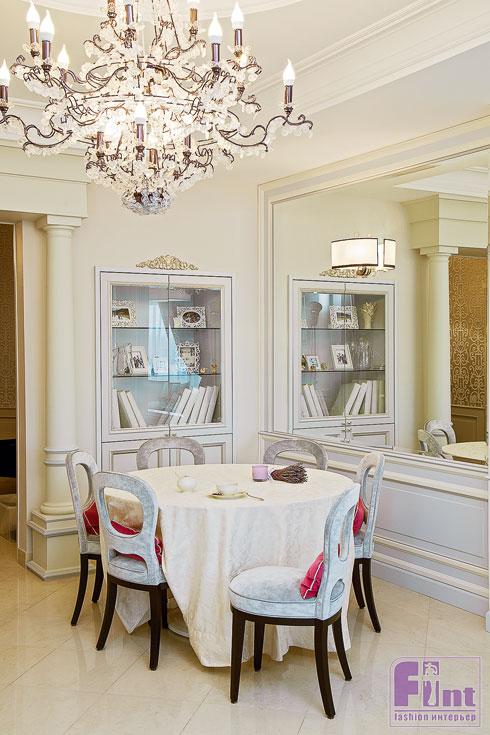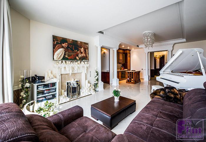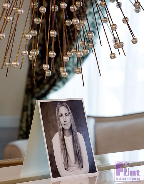 Над оформлением мы трудились вместе с Олесей Кондаковой, профессиональным дизайнером по интерьерам. Гостиная с элегантными классическими колоннами декорирована в респектабельном духе, как зал для приёмов. Белый рояль в центре — не только для красоты. Я осваиваю ноты, учусь играть (улыбается). По стенам я развесила свои фотографии, сделанные для одного российского журнала в столице Великобритании известным фото-художником Джоном Ранкином. Он — автор портретов многих знаменитостей, например, Мадонны или английской королевы, так что мне крупно повезло (улыбается).