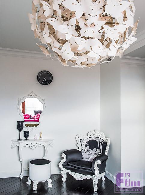 Моя гордость здесь — фарфоровая люстра, похожая на рой бабочек, обожаемых мною фантастических существ. Однажды я увидела эту люстру в английском журнале, сохранила картинку и позже отыскала её в Лондоне. Теперь, каждое утро, открывая глаза, вижу это чудо, произведение искусства, и оно меня настраивает на соответствующий лад. Ведь важно, что мы увидим первым, проснувшись…