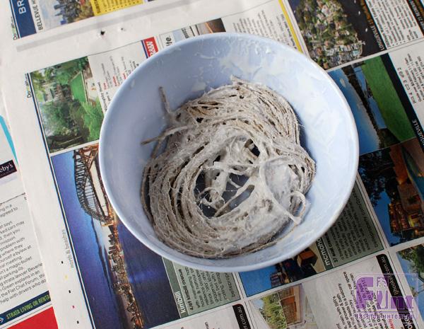 3. Замочите нарезанную бечёвку в приготовленной жидкости. Убедитесь, что бечевка хорошо пропиталась. При необходимости, добавьте еще укрепляющей жидкости.
