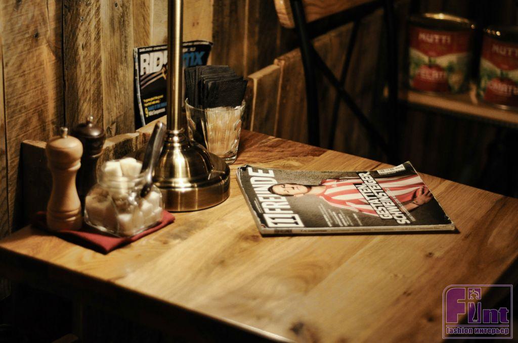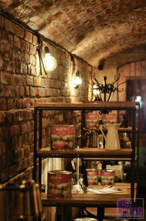 Обращает на себя внимание комфортная и продуманная световая схема, которую разработал под это необычное помещение Артемий Саранин. Помимо настенных светильников с открытой проводкой в металлических трубах, в помещении активно используется местное освещение в виде подвесных ламп над стойкой и настольных светильников на столах.