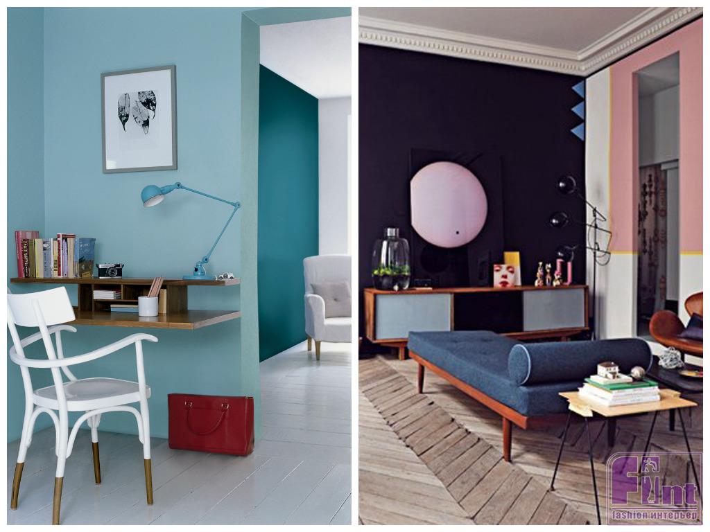 Другой известный производитель красок — AkzoNobel (краски Dulux) — тоже не отстаёт от модного тренда и предлагает разнообразить дизайн стен комбинированной окраской. Если вас заинтриговало это новое направление в дизайне интерьера, вот несколько советов, которые помогут в его применении.