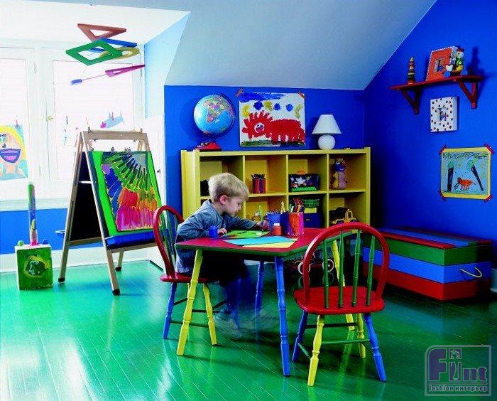 Подбор цветов осуществляется в зависимости от назначения комнаты. Новомодный тренд «три краски» идеально приживётся в детской комнате и в игровой. Для маленьких карапузов предпочтительнее мягкие светлые тона или ахроматическая гамма с использованием чистого белого цвета и серых оттенков. Для детей постарше подойдут контрастные яркие цвета.