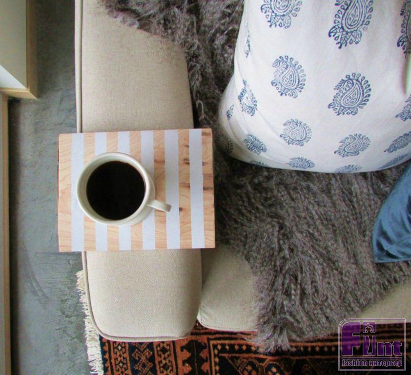 Кстати, такой столик отлично подойдёт детям, которые захотят что-то нарисовать, сидя на диване. Наш столик может не только отлично удерживать чашку с напитком, но и выступать в роли миниатюрного письменного стола.